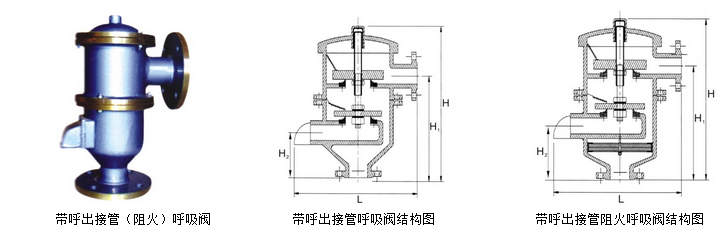 带呼出接管阻火呼吸阀是安装在罐顶上的通风装置,起减少油品蒸发损耗,控制储罐压力及阻止外界火焰传入的作用。带呼出接管呼吸阀具有通风量大,泄漏量小,耐腐蚀等特点,并有静电接地线,使呼吸阀与罐体保持电位。目前我公司在带呼出接管呼吸阀容易产生静电的部位,做了技术改进添加了聚四氟乙烯垫片所以不需要接静电排放装置。