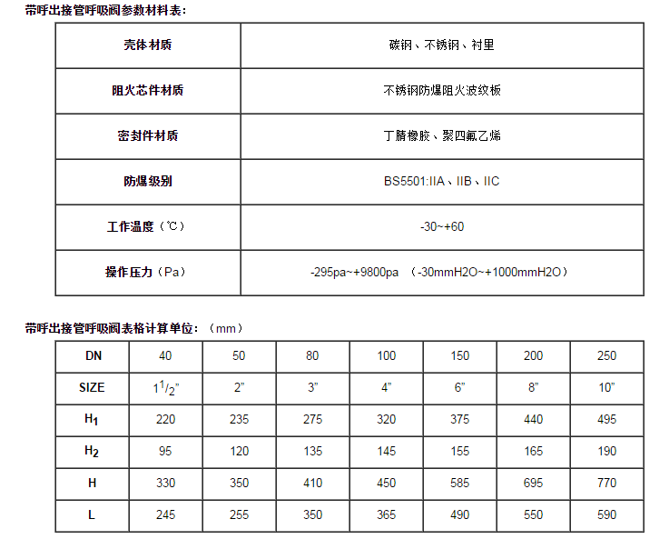 1、我厂承接各种非标压力带呼出接管呼吸阀;2、订货时请注明口径、材质、压力及数量等。