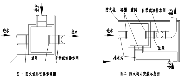 该产品排水管道采用法兰连接,埋地安装,克安装在防火堤内,也可安装在防火堤外: